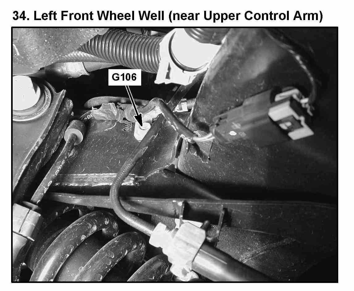 34. Left Front Wheel Well (near Upper Control Arm):