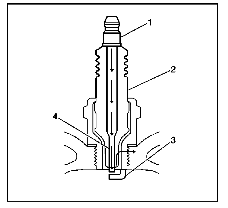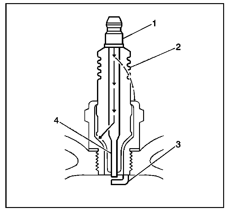 - Inspect for signs of tracking that occurred near the insulator tip instead of the center electrode (4).