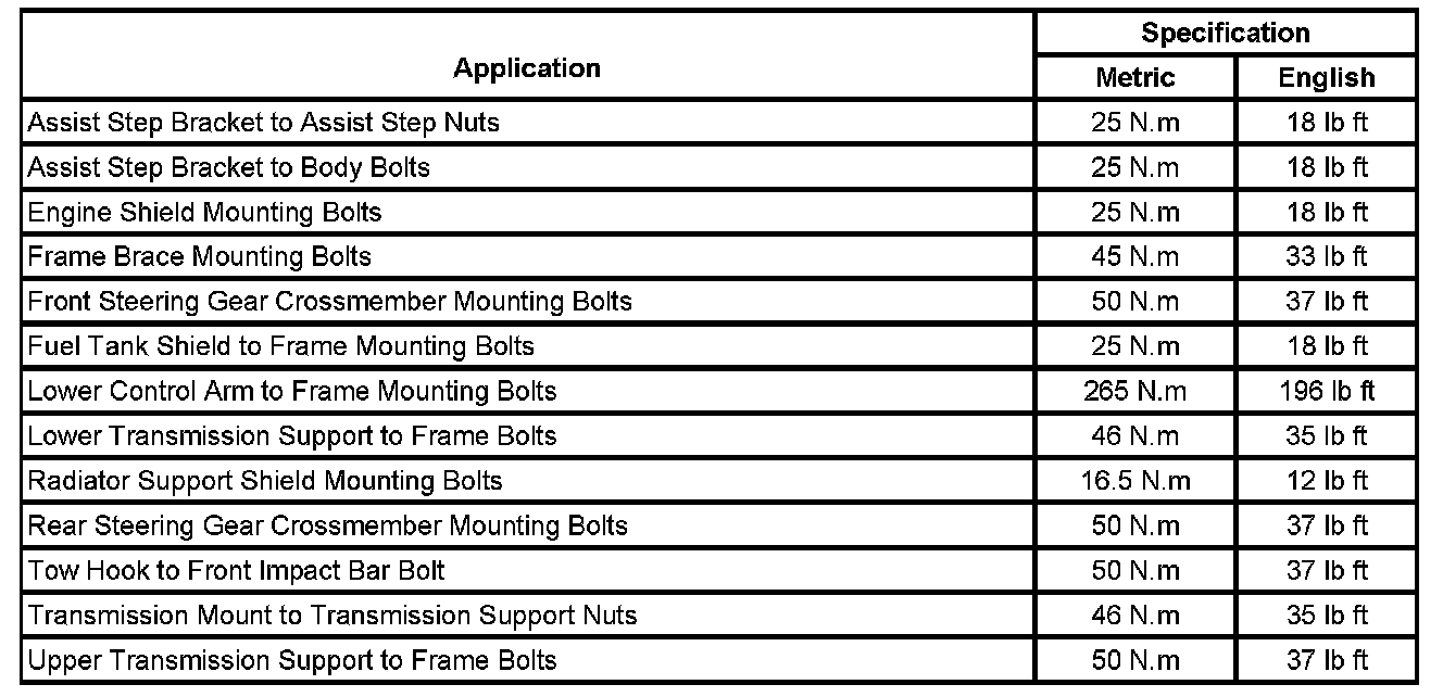 Fastener Tightening Specifications