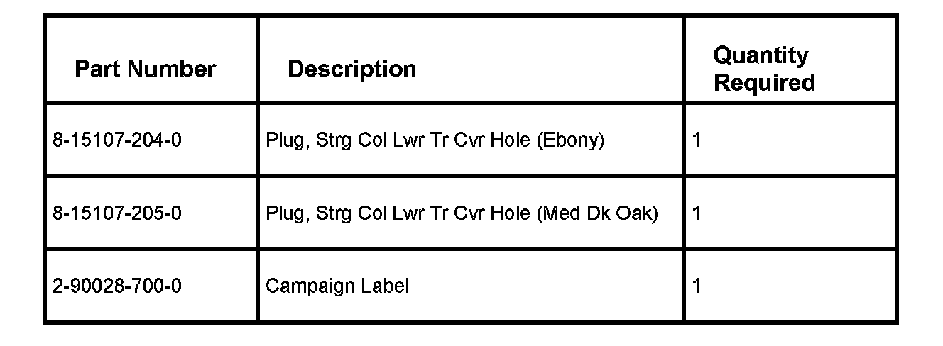 The following procedure provides instructions for installing a small plastic plug in the lower steering column cover and also removing the override lever from the transmission shift lever. Both procedures must be performed in order to complete the recall.