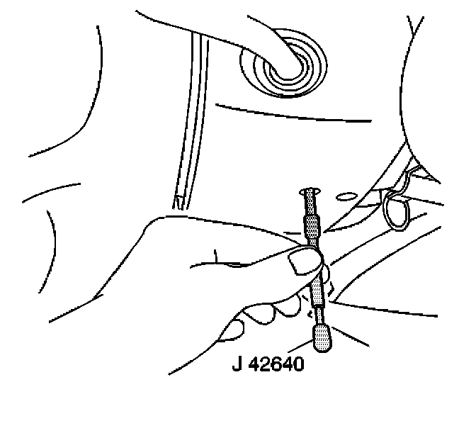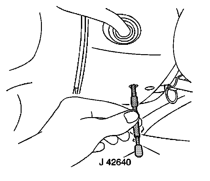 2. Lock the steering column through the access hole in the lower steering column trim cover using J 42640.