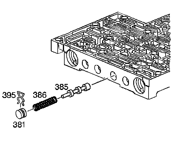 26. Remove the 3-4 shift valve spring (386) and the 3-4 shift valve (385).