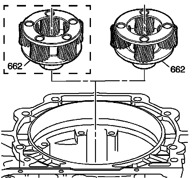 2. Install the input carrier assembly (662) onto the output shaft. The carrier assembly can be either a 4 or 5 pinion design, depending on model.