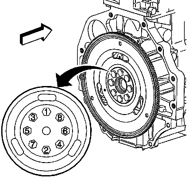1. Add threadlock GM P/N 12345493 (Canadian P/N 10953488) to the new flywheel bolts.