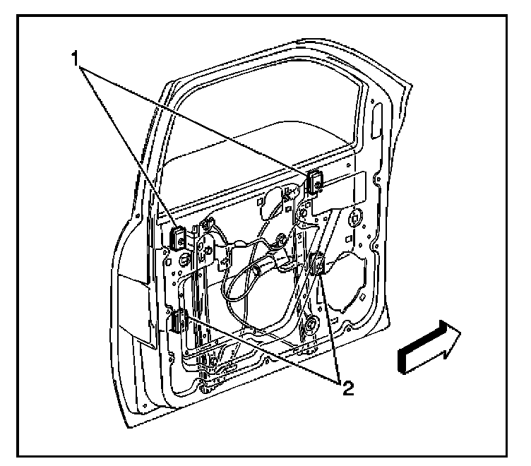 1. Install the window to the door with the regulator adjusted to the remove/load position (2).