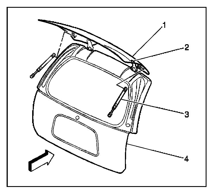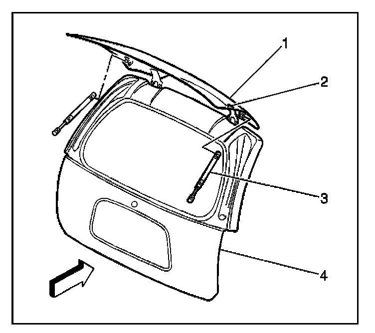 7. With the aid of an assistant remove the struts (3) from the liftgate window.