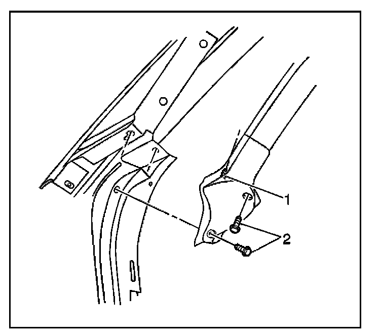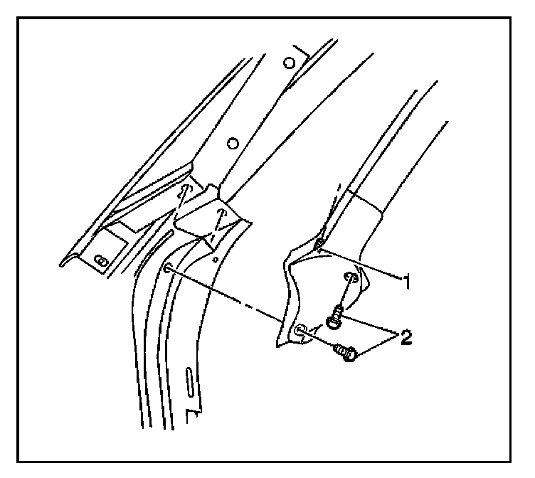 IMPORTANT: The windshield lower supports (1) have molded in locks with an adhesive strip (2) on the back side. Once the windshield lower stop have been removed they must be replaced.