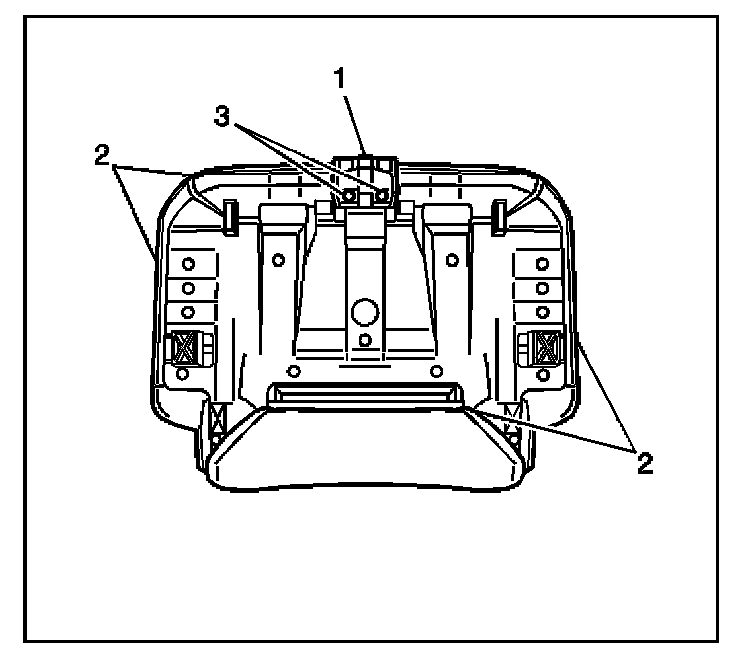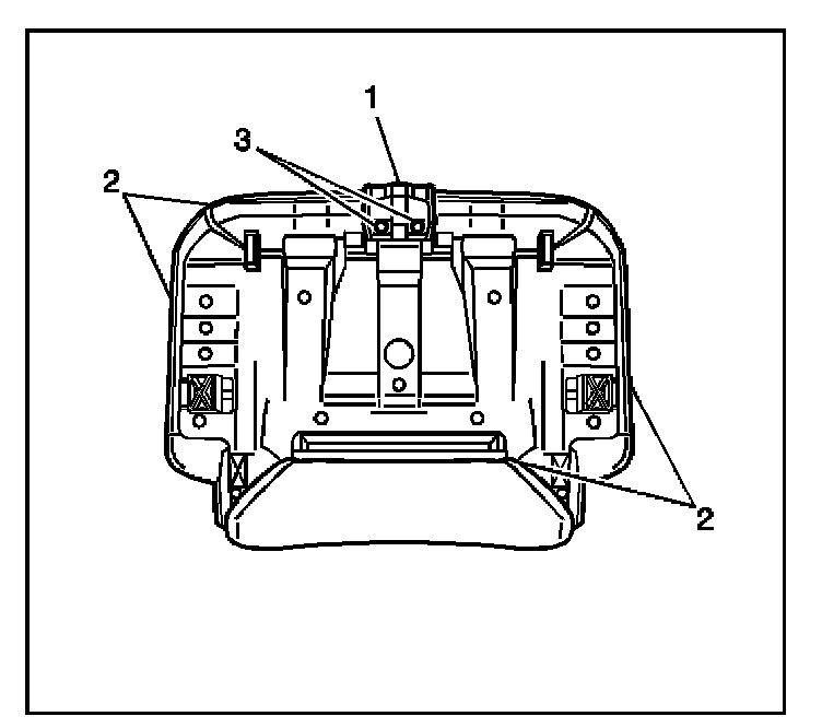 1. Remove the two screws (3) securing the seat pull handle (1) to the seat panel.