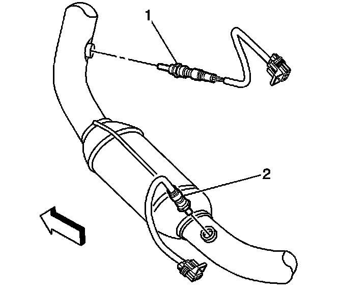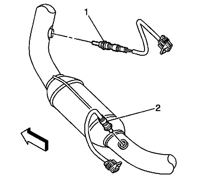 6. Install the left rear HO2S (2) to the catalytic converter.
