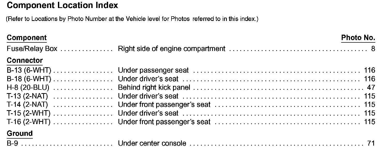 Seat Temperature Element: Locations