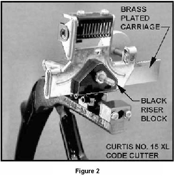 The Curtis No. 15 XL Code Cutter is identified by a brass plated carriage and black riser block (see figure 2).