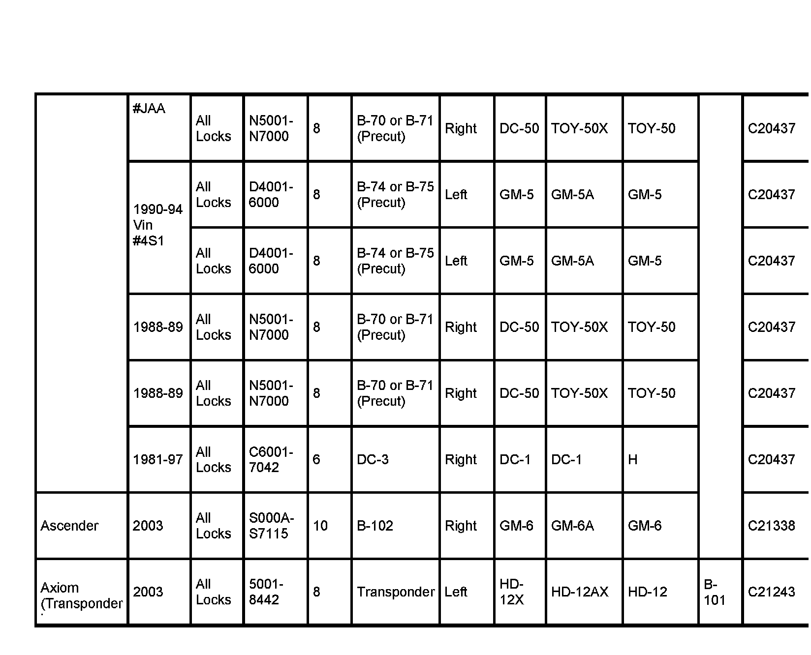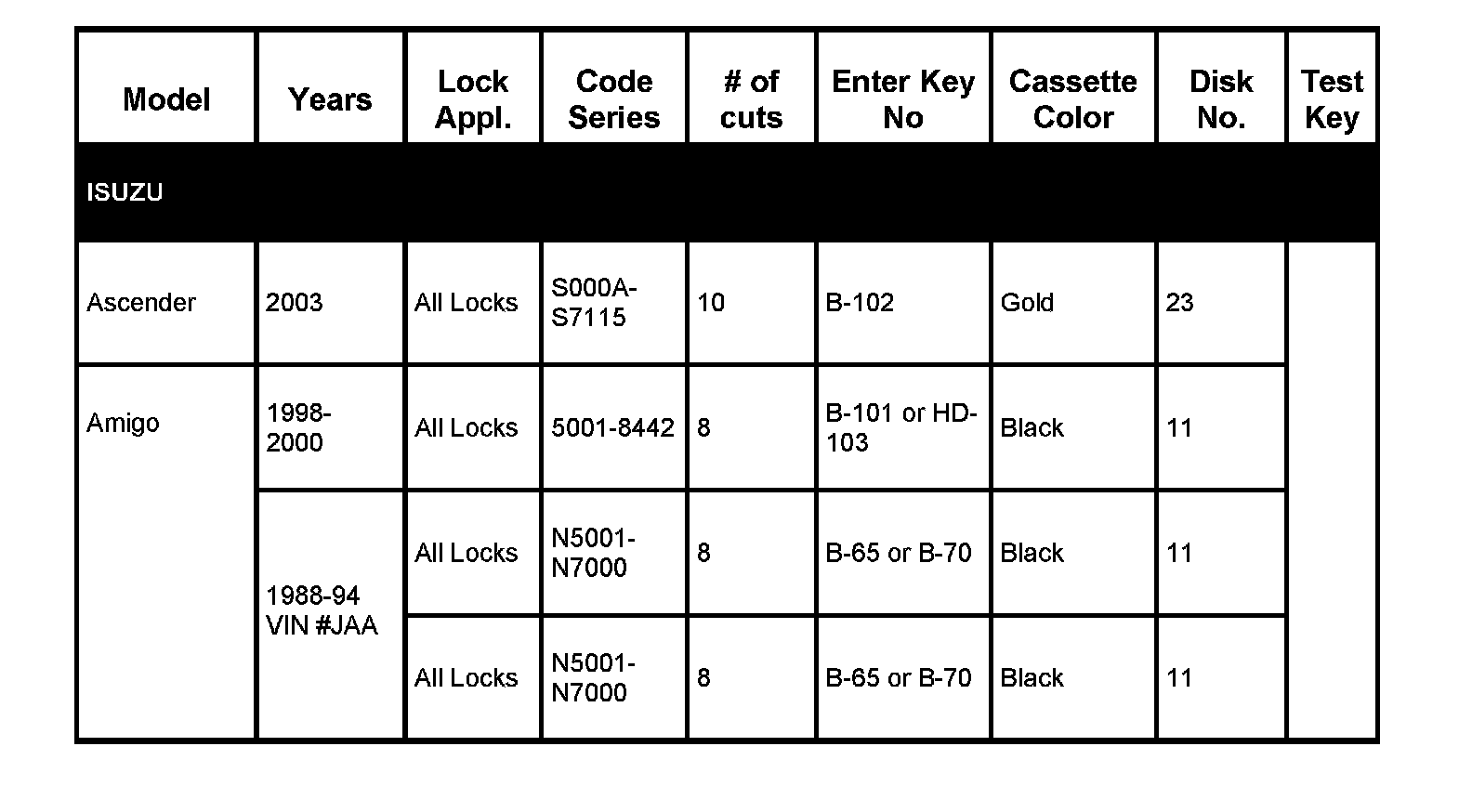 Key blanks for 2002 model year and earlier can continue to be cut using the new Curtis No. 15 Code Cutter.