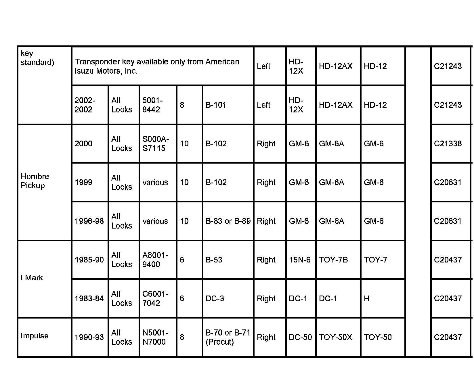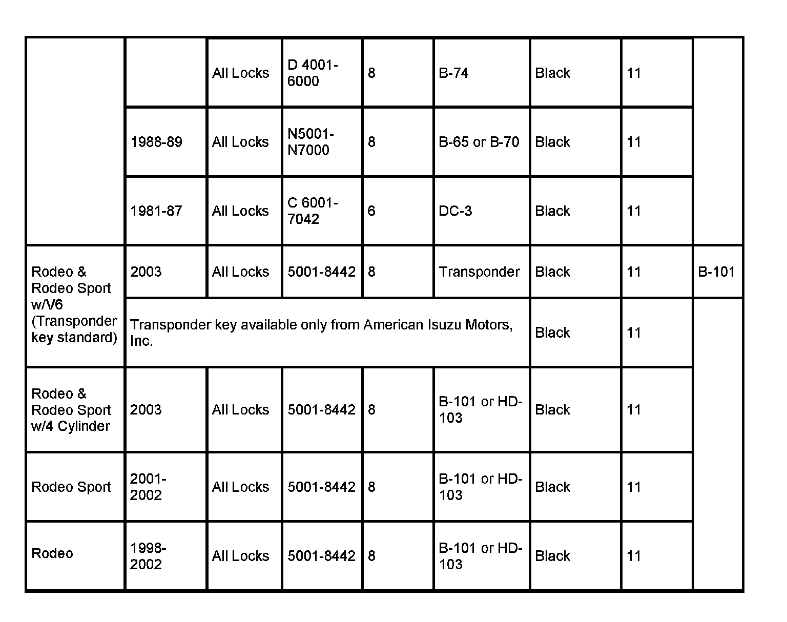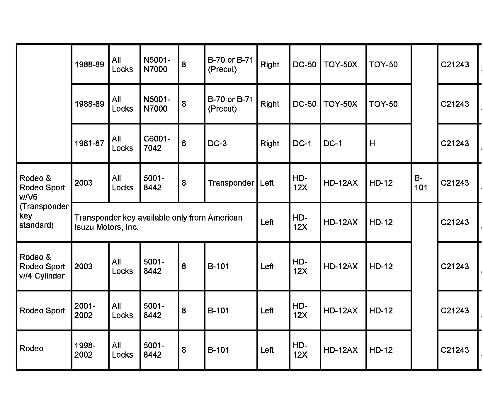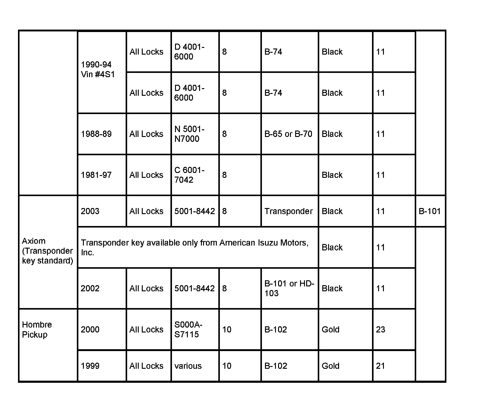 Beginning with the 2003 Model Year, Isuzu introduced the Isuzu Immobilizer System in the Rodeo, Rodeo Sport and Axiom with 3.2L/3.5L engines. An integral component of the Immobilizer System is the Transponder Key (see figure 1).