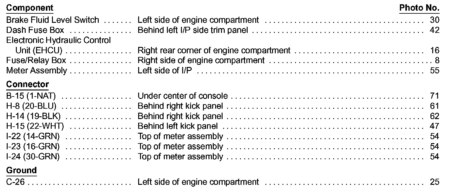 Brake Warning System Component Location Index Image 71-1:
