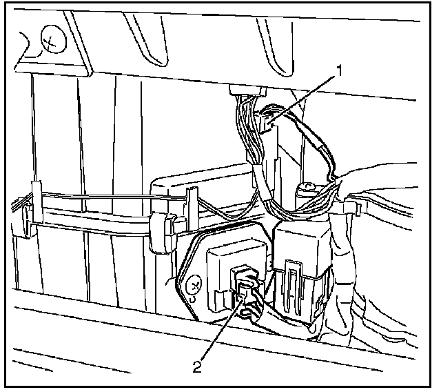 4. Disconnect power transistor (2) and duct sensor connector (1).