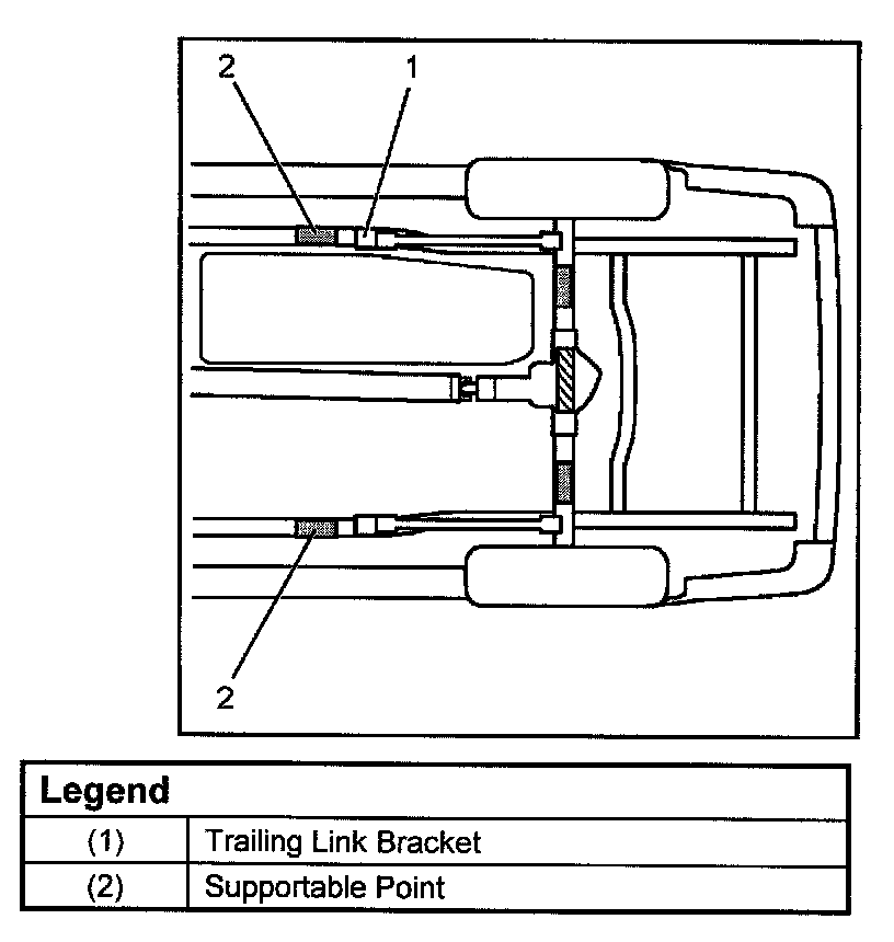 - Position the chassis stands at the bottom of the frame side member, just behind the trailing link bracket.