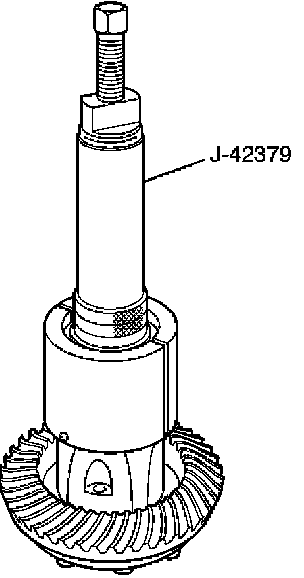 8. Remove side bearing, using remover J-42379 and adapter J-8107-2.