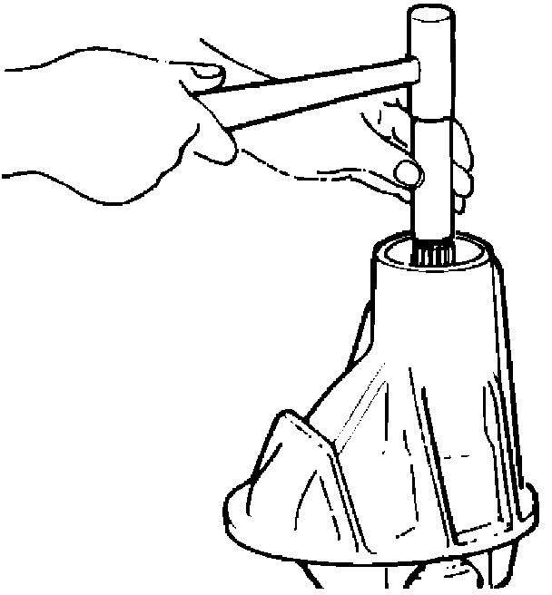 12. Remove the drive pinion assembly using a soft metal rod and a hammer.