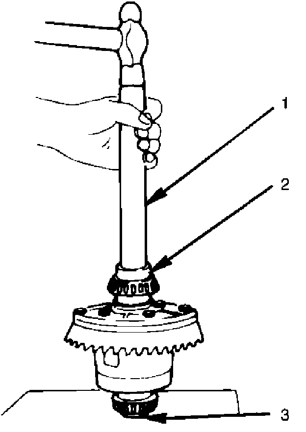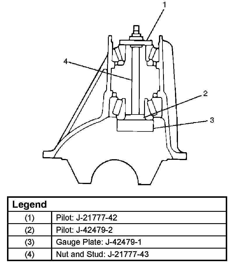 1. Attach the side bearing to the differential assembly without shims. Support the opposite side using a pilot to prevent bearing damage.