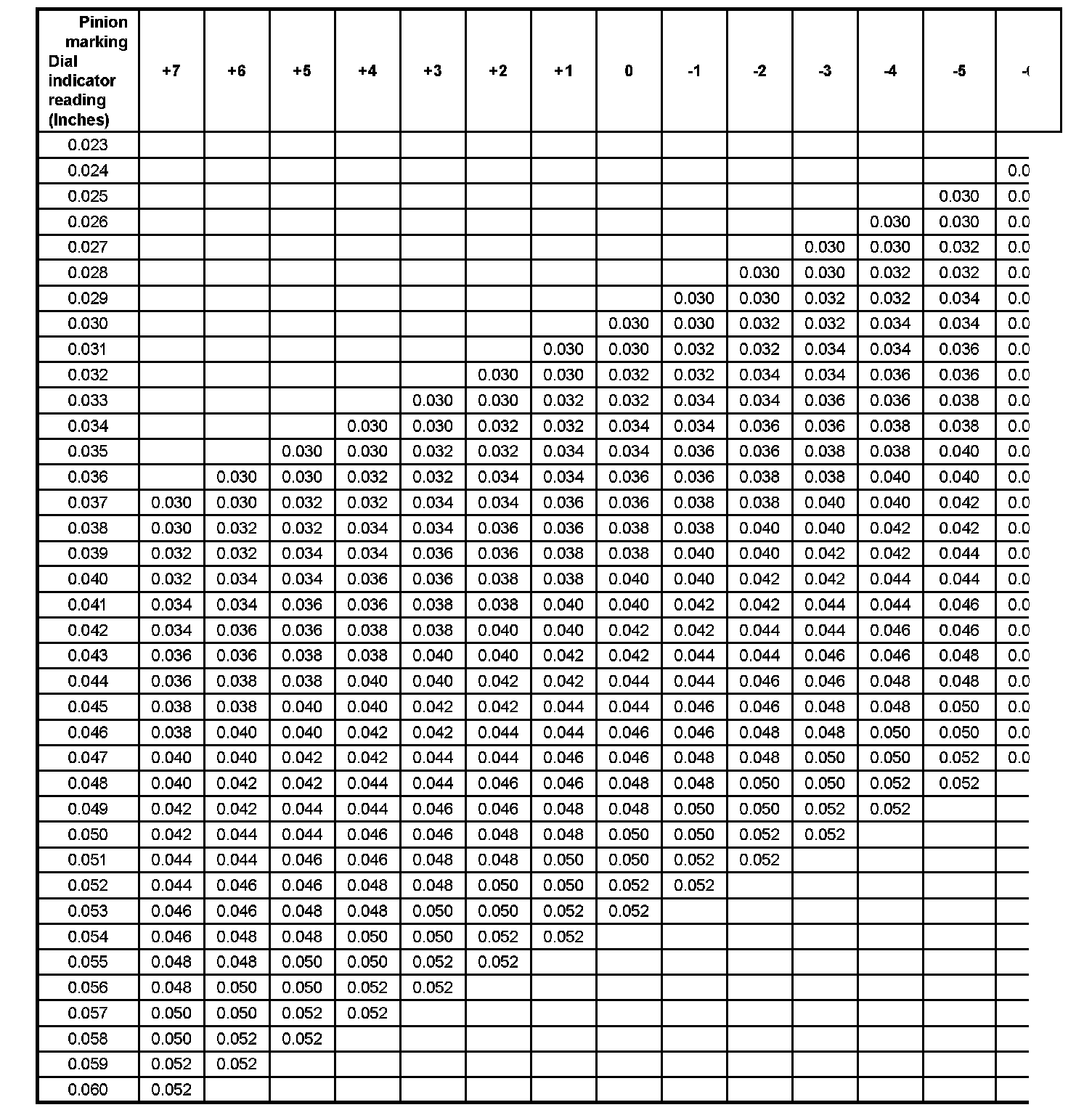 The number indicates a necessary change in the pinion mounting distance. A plus number indicates the need for a greater mounting distance (which can be achieved by decreasing the shim thickness). A minus number indicates the need for a smaller mounting distance (which can be achieved by increasing the shim thickness). If examination reveals pinion depth code "0", the pinion is "nominal".