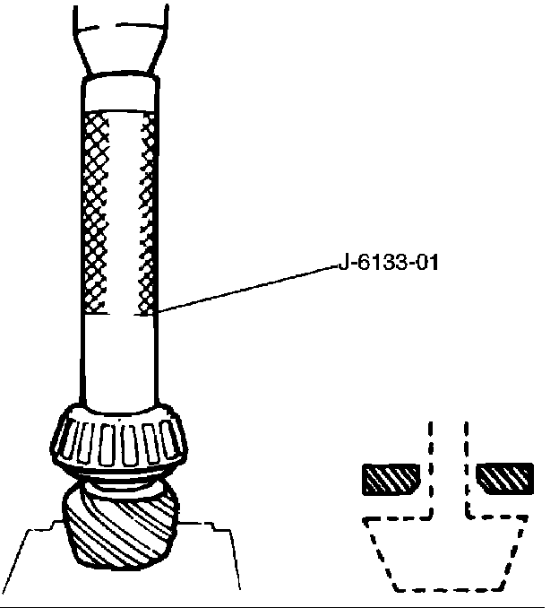 4. Place the shim on the drive pinion. Install the inner bearing onto the pinion using an installer J-6133-01 and a press.