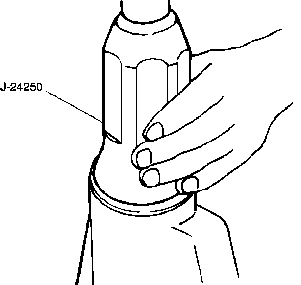8. Use oil seal installer J-24250 to install a new oil seal that has been soaked in front axle lubricant.