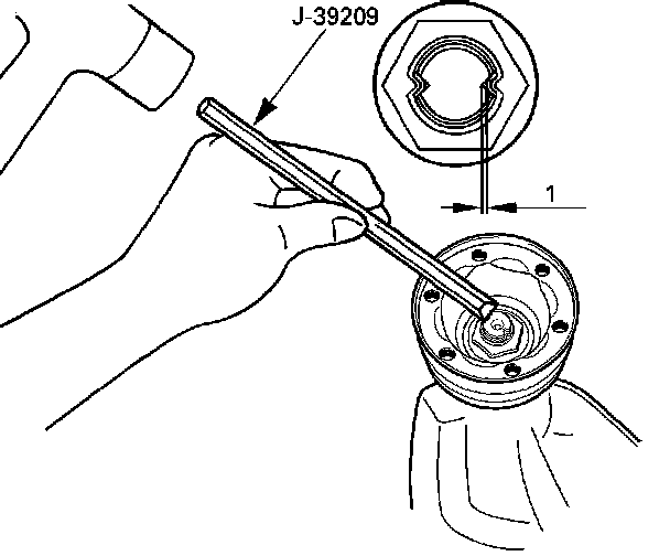 4. Using punch J-39209, stake the flange nut at two points.