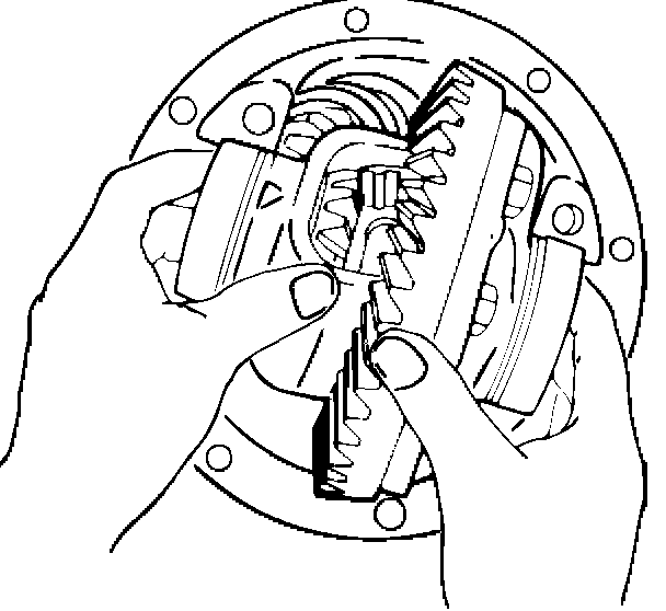 2. Insert the differential cage assembly with bearing outer races into the side bearing bores of the carrier.