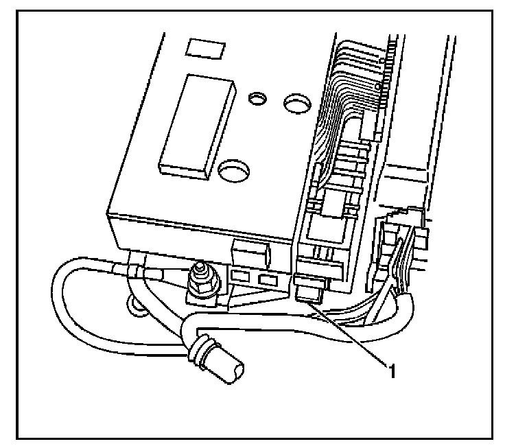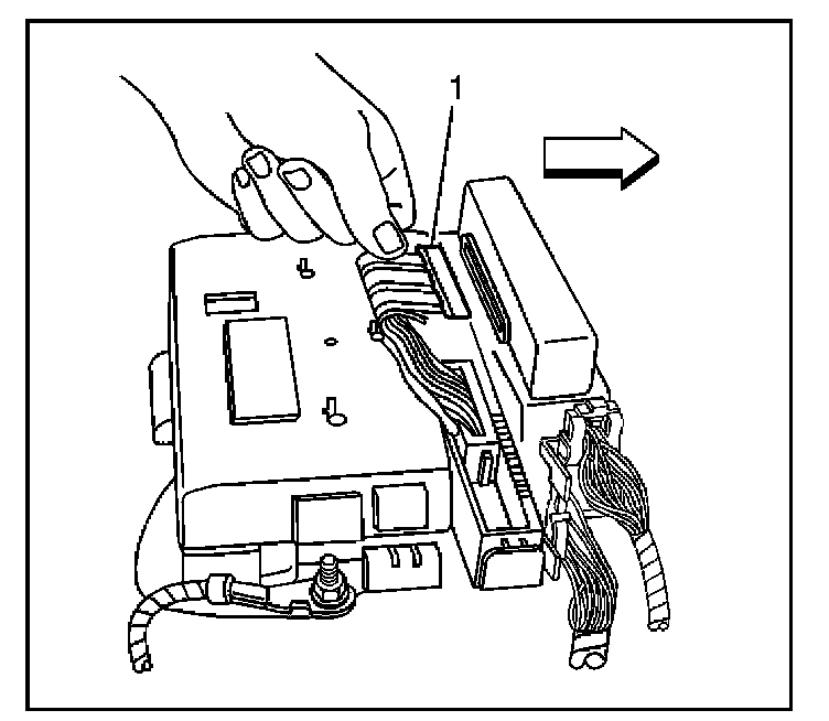 9. With an upward motion, disconnect the body wiring extension (1) from the rear electrical center.