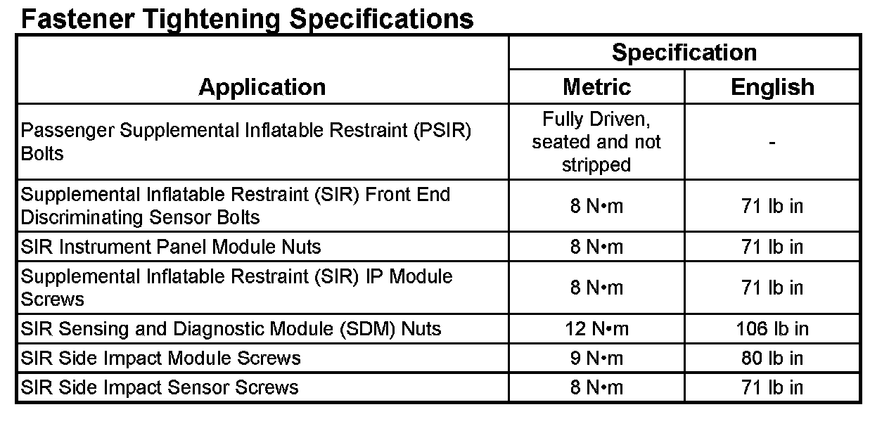 Fastener Tightening Specifications: