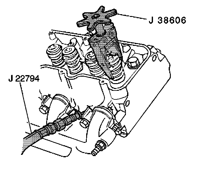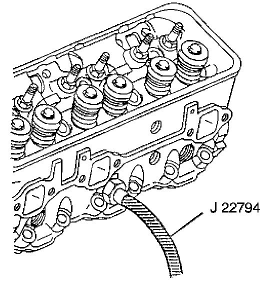 8. Apply compressed air to J 22794 in order to hold the valves in place.