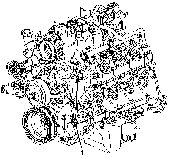 2. Locate the engine block left front oil gallery plug (1).