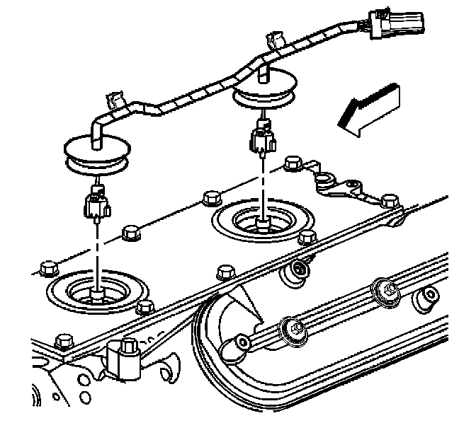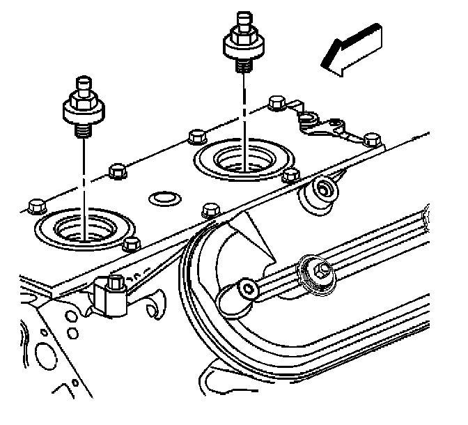 1. Install NEW knock sensor oil seals (1) into the valley cover (2).
