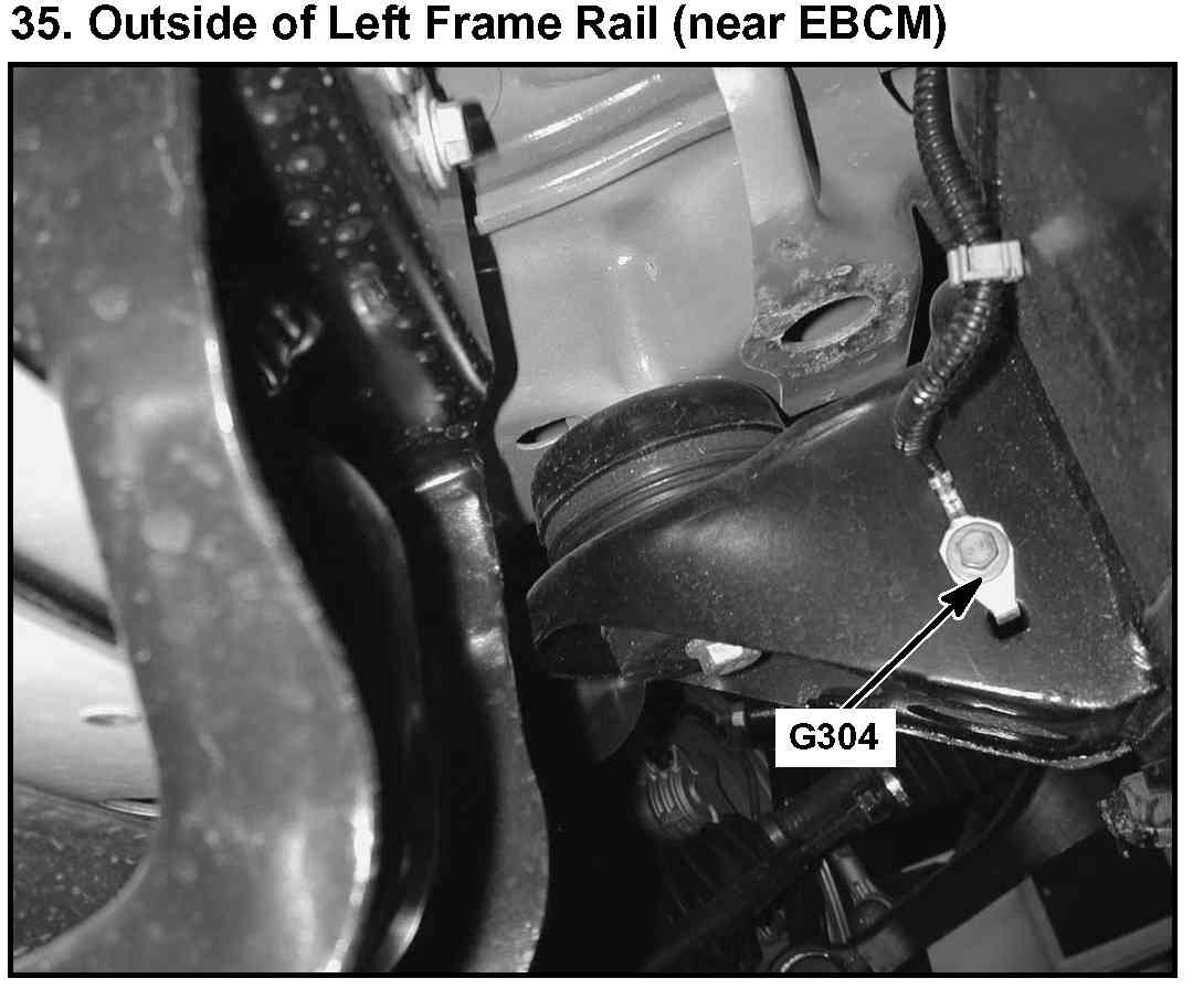 35. Outside of Left Frame Rail (near EBCM):