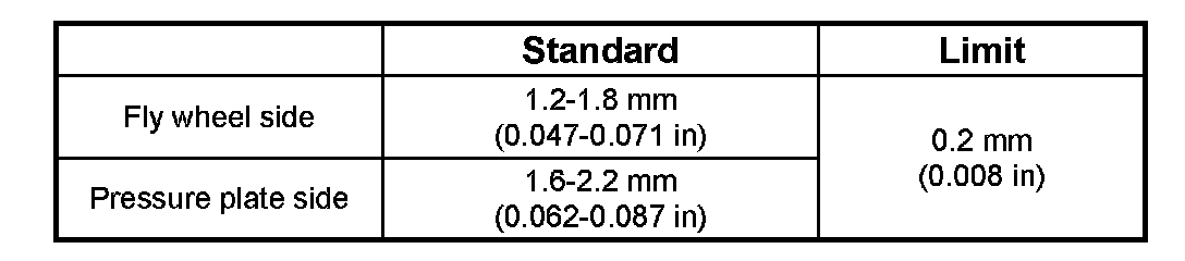 - Be sure to measure the rivet head depression on both sides of the driven plate. If the measured value is less than the specified limit, the driven plate assembly must be replaced.