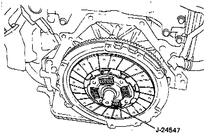 2. Use the pilot aligner J 24547 to prevent the driven plate assembly (3) from falling free.