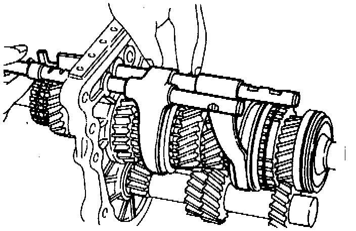 - Remove the rev-5th, 1st-2nd and 3rd-4th shifter rods carefully. Interlock pins are located between the shifter rods in the intermediate plate.