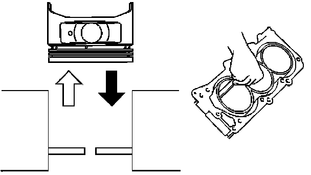 ^ Apply a thin coat of engine oil to the piston pin. Try to insert the piston pin into the piston pin hole with normal finger pressure.
