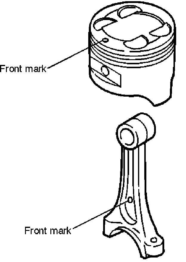 ^ Attach the piston to the connecting rod with the piston front mark and the connecting rod front mark on the same side.