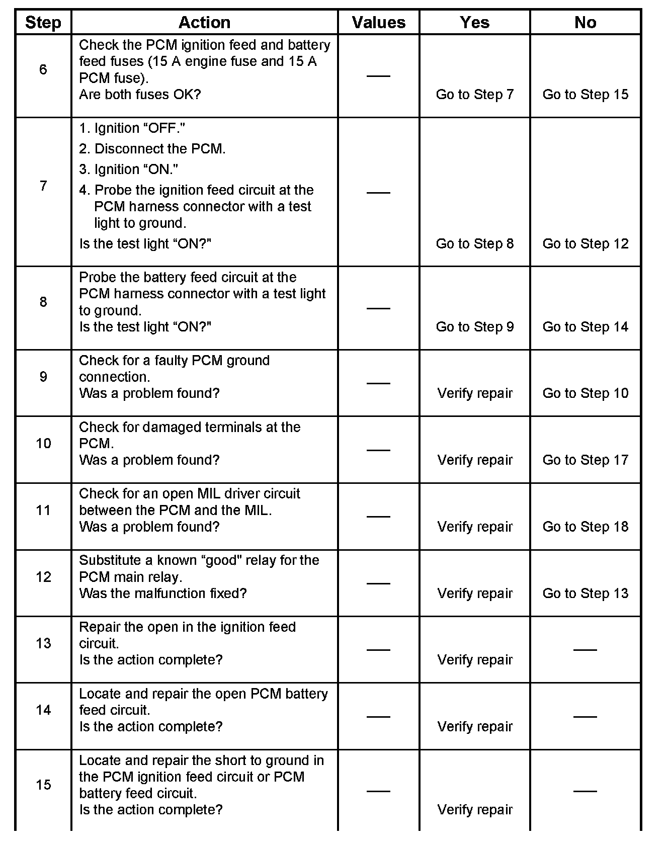 2. A "No MIL" condition accompanied by a no-start condition suggests a faulty PCM ignition feed or battery feed circuit.