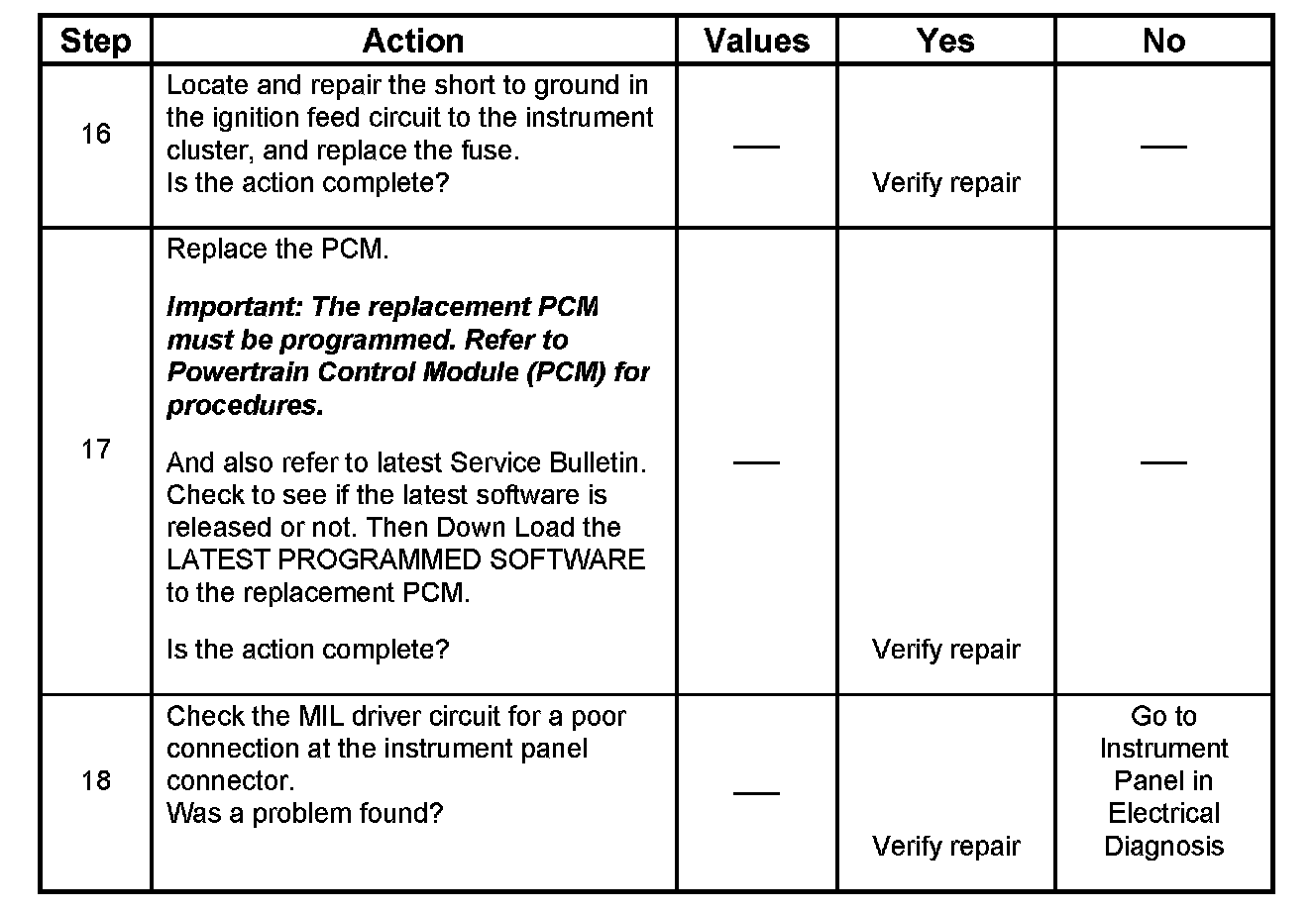 17. This vehicle is equipped with a PCM which utilizes an electrically erasable programmable read only memory (EEPROM). When the PCM is replaced, the new PCM must be programmed. Refer to PCM Replacement and Programming Procedures Powertrain Control Module (PCM) and Sensors.