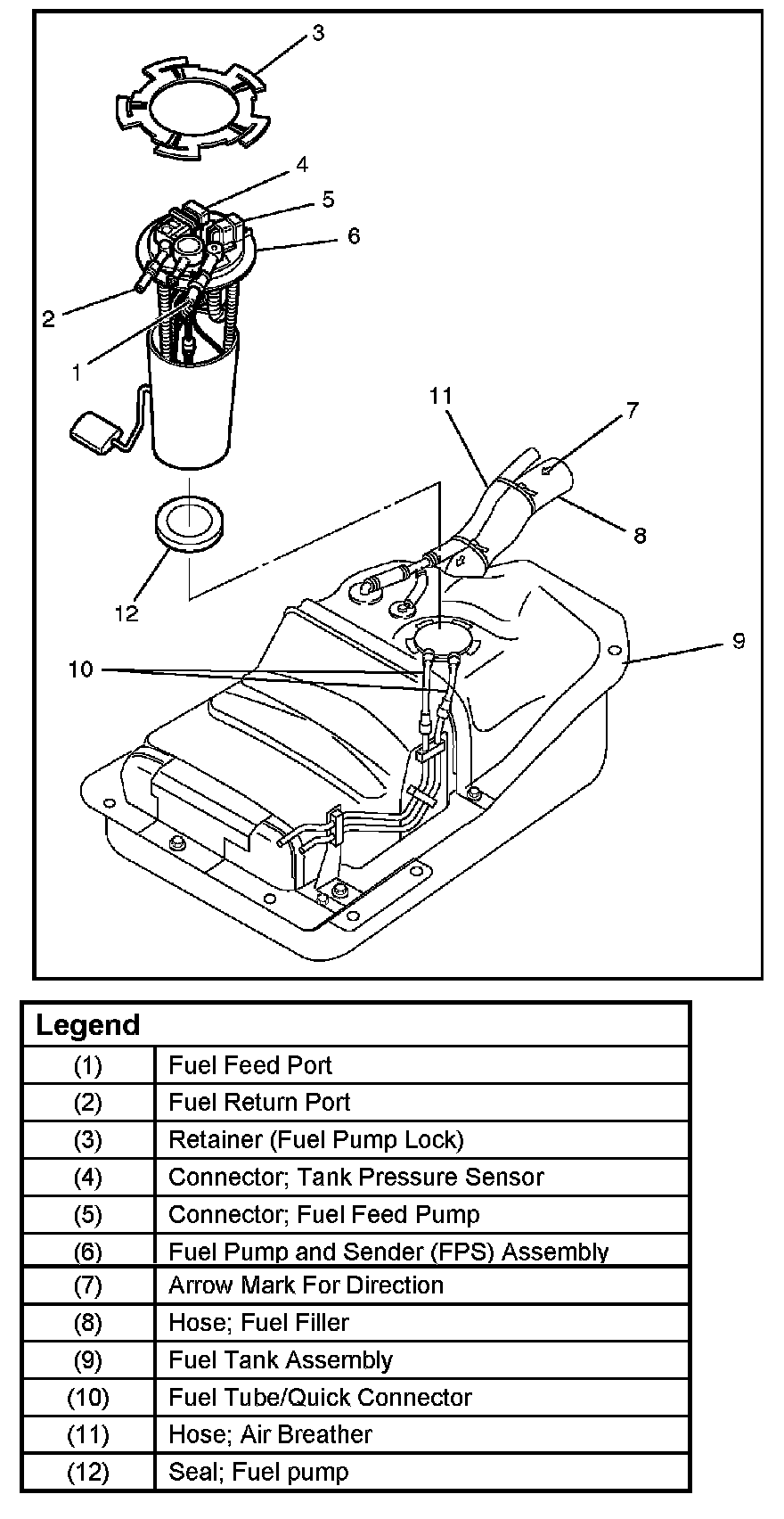 1. Install FPS assembly (6) with retainer (3) and new seal: fuel pump (12) by J-3976 5.