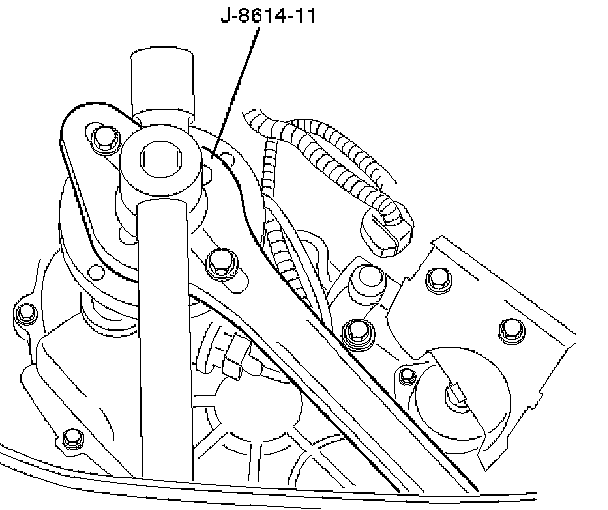 - Use the flange holder J-8614-11 and lock nut wrench J-37219 to install the lock nut (16).
