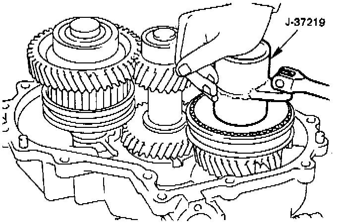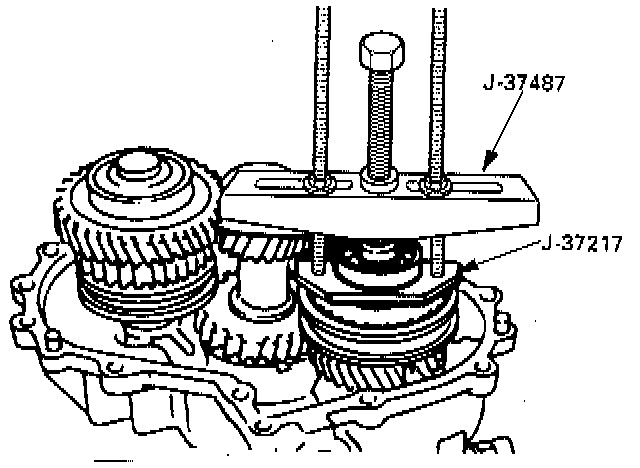 14. Use a bearing remover J-37217 and puller J-37487 to remove the ball bearing (15).