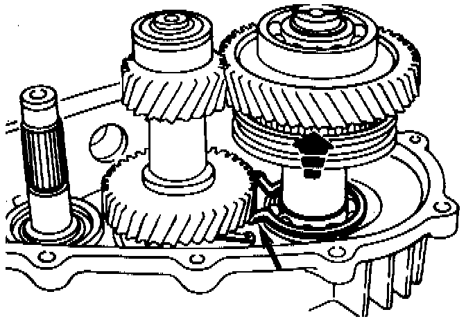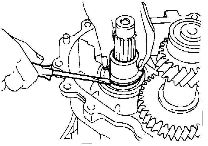 Pull out the top gear shaft until the ball bearing snap ring groove protrudes from the transmission case front cover fitting face.