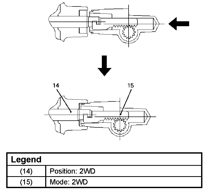 3. Push the 2WD-4WD actuator assembly with 2WD-4WD shift rod till the shift rod reaches the 2WD position.