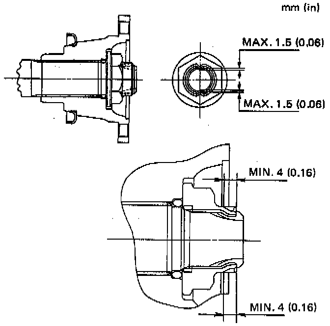 Note: Be sure to confirm that there is no crack at the staked portion al the flange nut after staking.