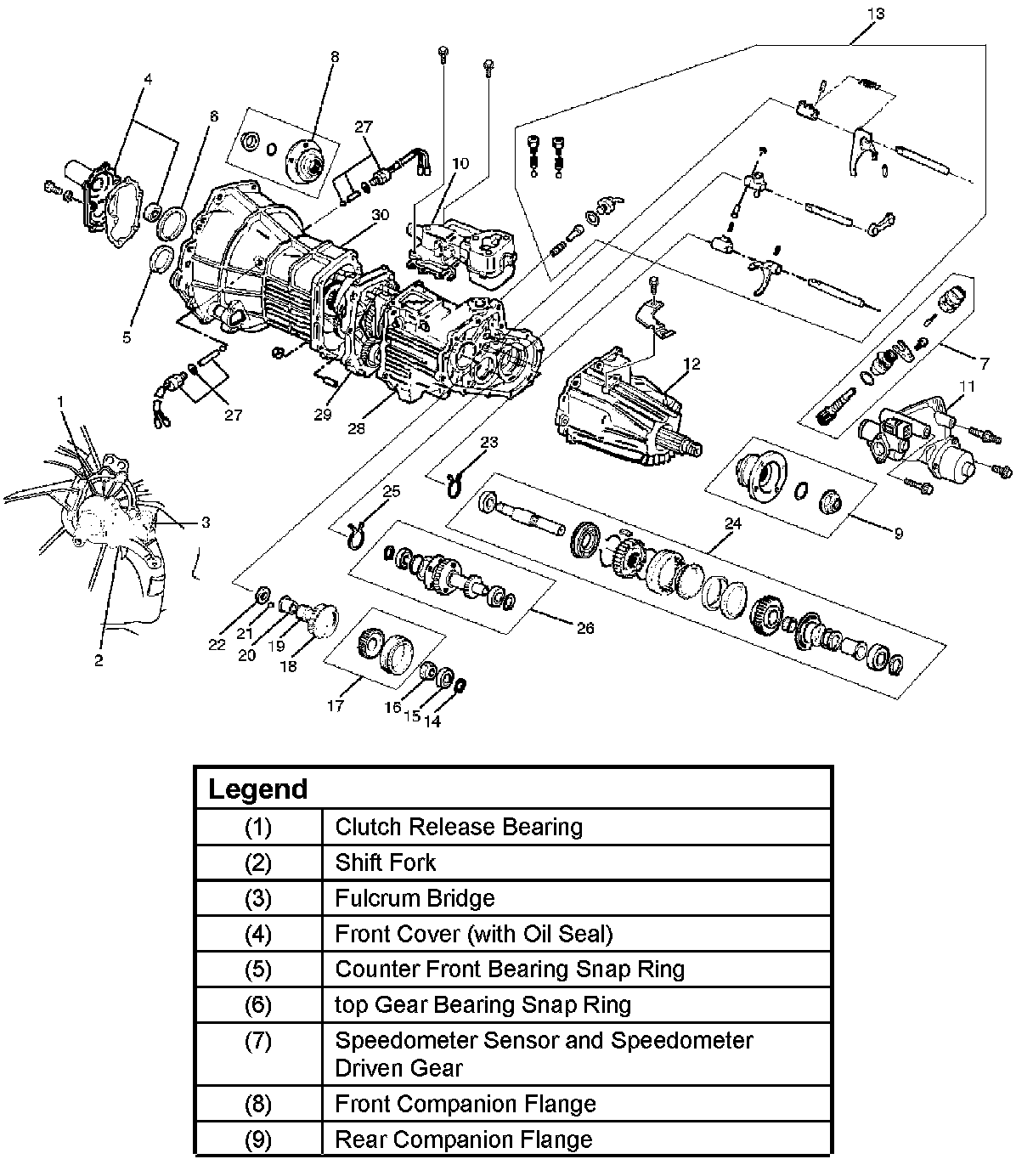 24. Pull out intermediate plate with gear assembly (29) from transmission case.