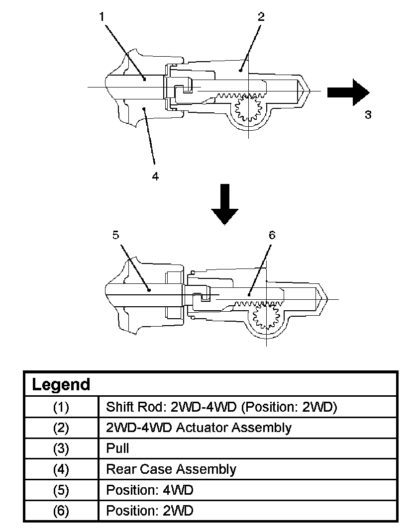3. Pull the 2WD-4WD actuator assembly with 2WD-4WD shift rod.