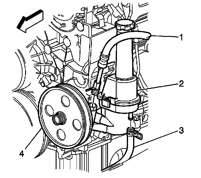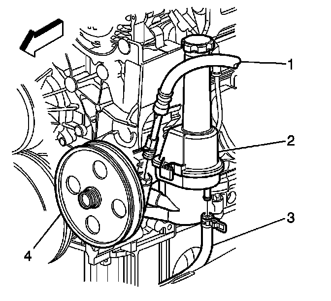2. Disconnect the power steering pressure (1) and return hose (3) from the power steering pump (2)